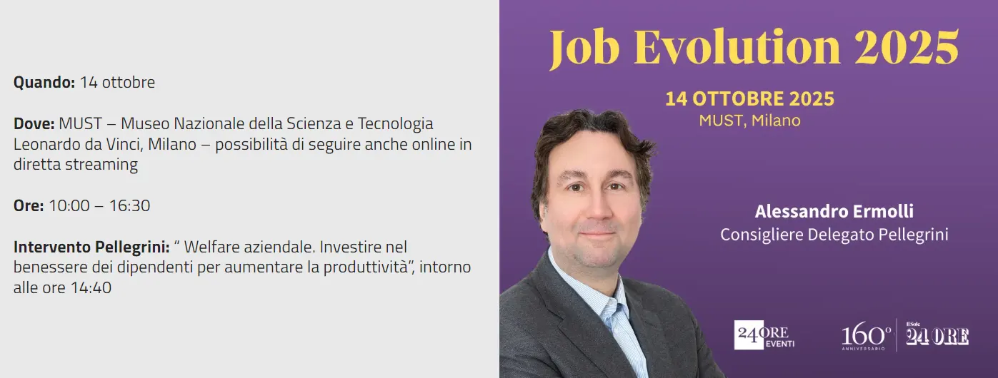 In qualità di partner, Pellegrini parteciperà con lo speech di Alessandro Ermolli, Consigliere Delegato, che presenterà spunti per politiche di welfare flessibili e sostenibili, con l’obiettivo di aiutare le imprese ad affrontare e superare le sfide del futuro. In particolare, presenterà un nuovo servizio pensato per facilitare l’accesso alle cure per i lavoratori di tutte le aziende.